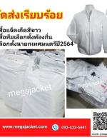 ขายส่ง เสื้อแจ็คเก็ต สีขาว คอจีน คอตั้ง ผ้าไมโคร พร้อมรับปัก 063-632-6441
