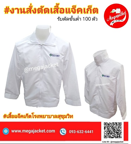 เสื้อหาเสียง เสื้อพรรคการเมือง รับสั่งตัดเสื้อแจ็คเก็ตสีขาวล้วน พร้อมสกรีนหรือปักโลโก้ Jacketสั่งตัด แพทย์พยาบาล โรงพยาบาล 093-632-6441