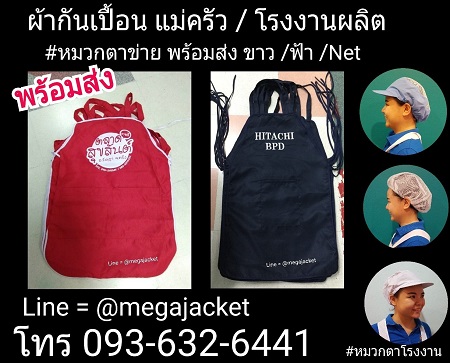 ผ้ากันเปื้อนพร้อมสกรีน พนักงานออกบูธ พนักงานส่งเสริมการขาย พนักงานฝ่ายผลิต หมวกโรงงาน พร้อมปัก/สกรีนโลโก้ 093-632-6441